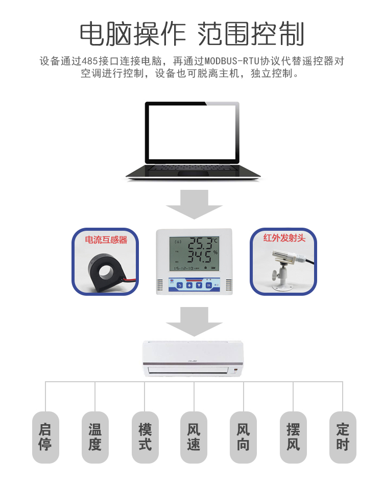n 带有485接口,可通过MODBUS-RTU协议代替遥控器对空调进行控制。