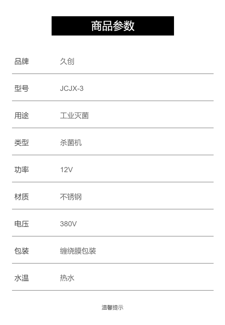 产品参数