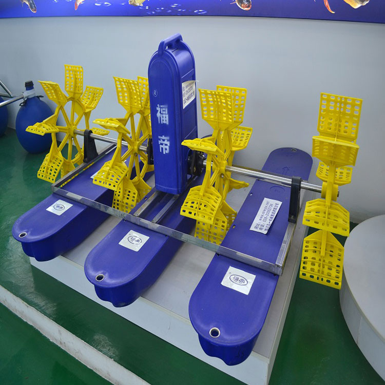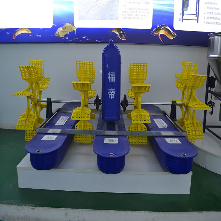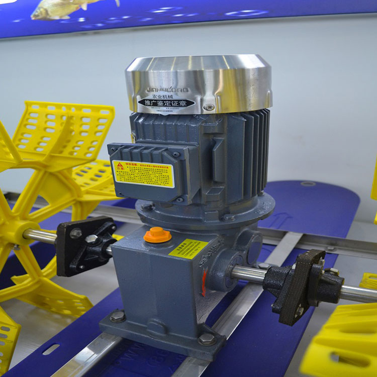 6、水车增氧机产出的水花和空'接触达到增氧,流出的水把整个鱼塘里的水推动施转从而把有毒物质、有害物质、施转到中心,让吃水深度深的设备把有害物质分减。
