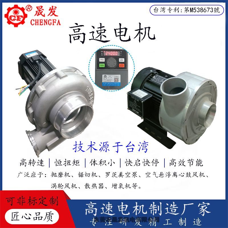 高速电机俗称特殊电机、特殊三相异步电机,电机优点是高转速,高速电机的转速通常在3000转/分及以上、高速电机具有:1)设计理念、角度、技术参数不同,采用纯铜转子功率密度大;2高转速,无磁性、无碳刷、与直流电机结构大不一致,体积会远小于普通电机是普通电机的1/3,可以更多有效的安装空间;3)具有瞬启、瞬停、恒转矩;4)传动效率高,节能降耗且环保,低噪音等特性