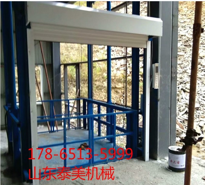 山东泰美升降机械制造有限公司升降货梯可根据用户的要求,定做不同尺寸,不同吨位的单叉各种异型升降平台(升降机、电梯、液压货梯、杂物电梯)产品规格:本类产品采用钢架结构或高强度钢板结构,承载能力由0.3至30吨,升降范围从0.1到18米。设备尺寸可根据用户需求定做。操作方式可分为上下控制和地面单人控制,也可多层控制简介.