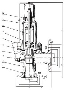 弹簧全启式安全阀外形尺寸和连接尺寸