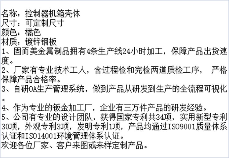 分类 | 控制器机箱壳体 | ||