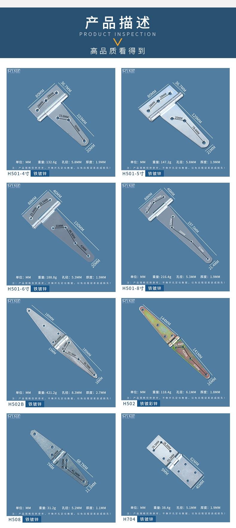 HOUNA华纳 厂家直销木箱三角镀锌重型铰铁合页T型铰链出口柜合页铰链