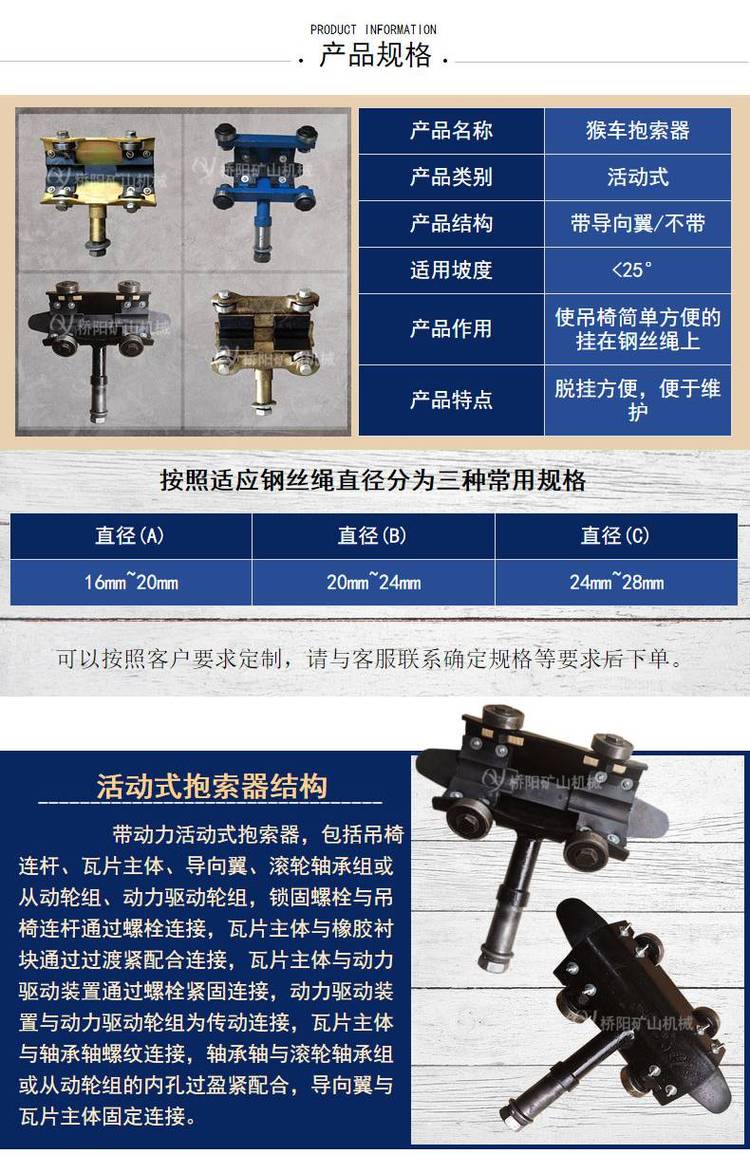 作用 | 使吊椅简单方便的挂在钢丝绳上 | ||