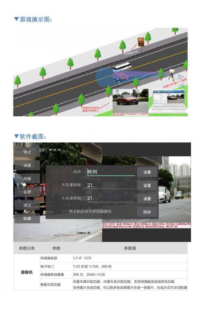 ? ? 采用交通CCD300万高清摄像机,500万高清镜头,超速自动抓拍,可设置抓拍照片的张数,可实时查看预览抓拍的照片,照片上叠加超速车辆的相关信息,可在设备上直接设置相关参数,可本地接收照片,也可通过4G无线传输至QQ接收照片,超速自动报警。