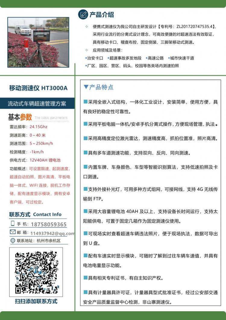 产品名称:移动式雷达测速仪