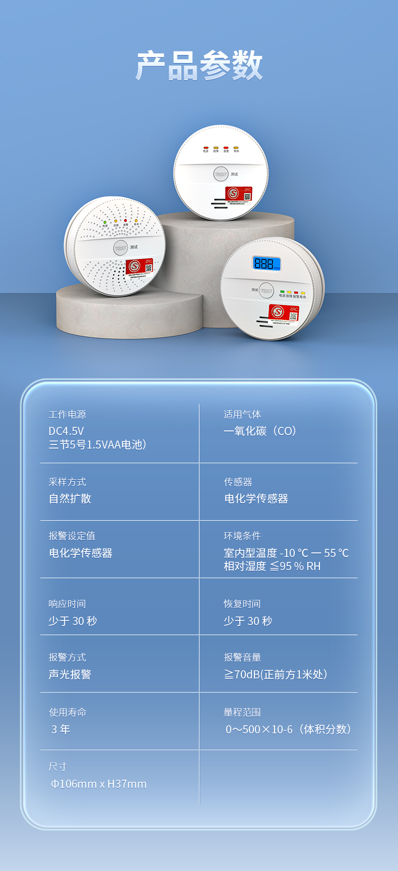 报警音量 | ≧70dB(正前方1米处) | ||