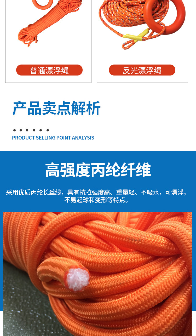 水域反光夜光救生船用救生圈漂浮绳水面逃生救援绳