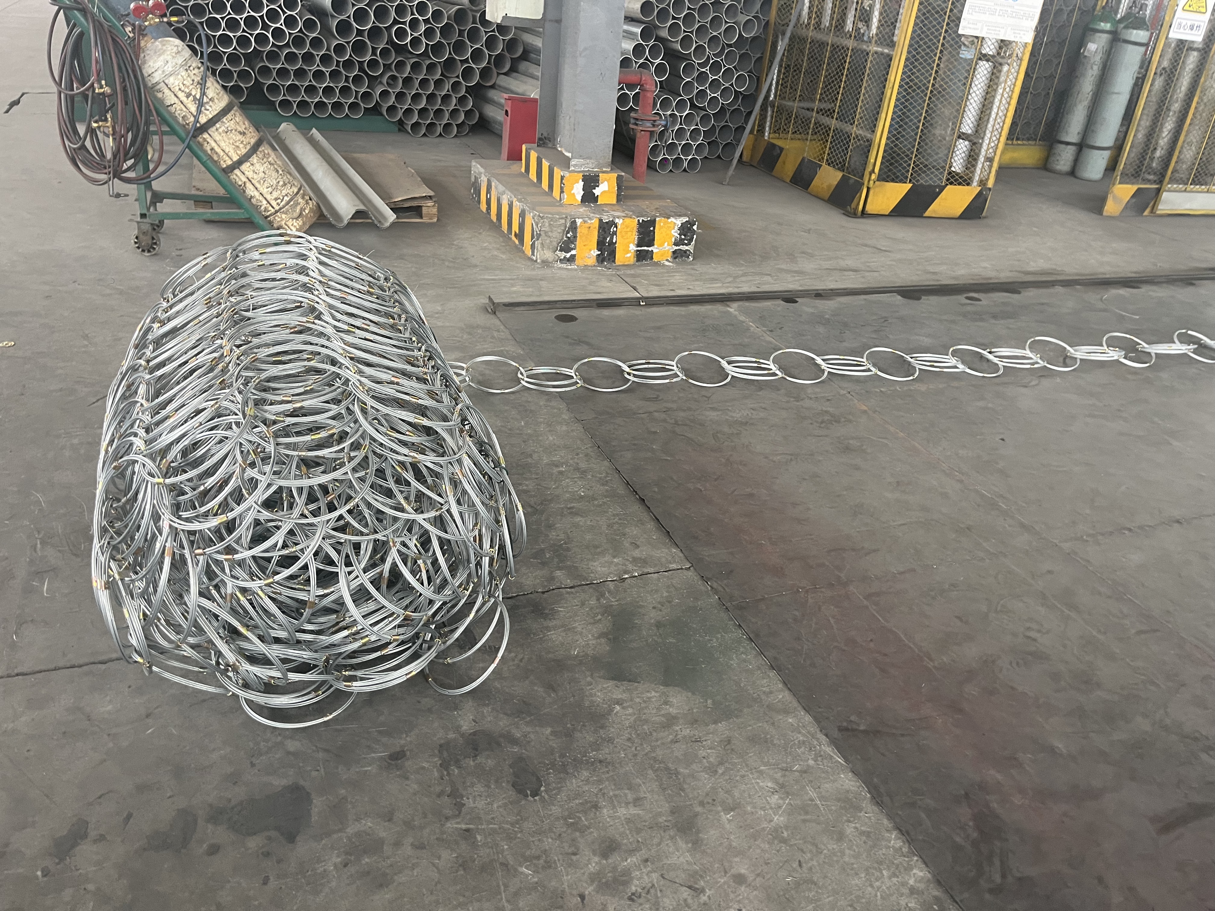 表面处理:镀锌,涂塑,浸塑。用冷拔低碳钢丝焊接成网筒状卷边与网面一体,