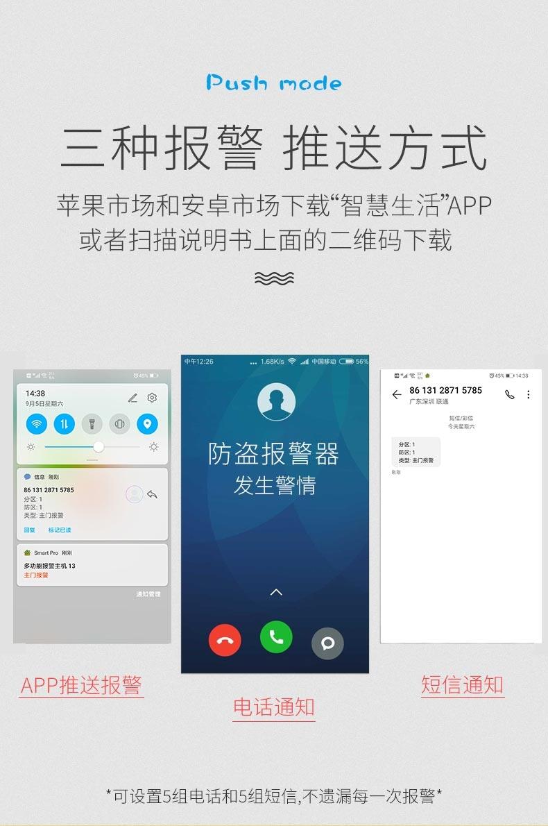 >WIFI/GSM/3G/GPRS联网报警器,支持APP推送、短信、语音监听,中心联网等多通道报警方式,确保报警性能稳定可靠。