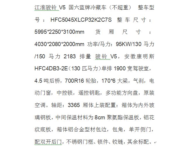 4.2米江淮骏铃冷藏车 4米2蓝牌130马力/150马力冷链运输车厂家 品牌 | 江淮 | ||