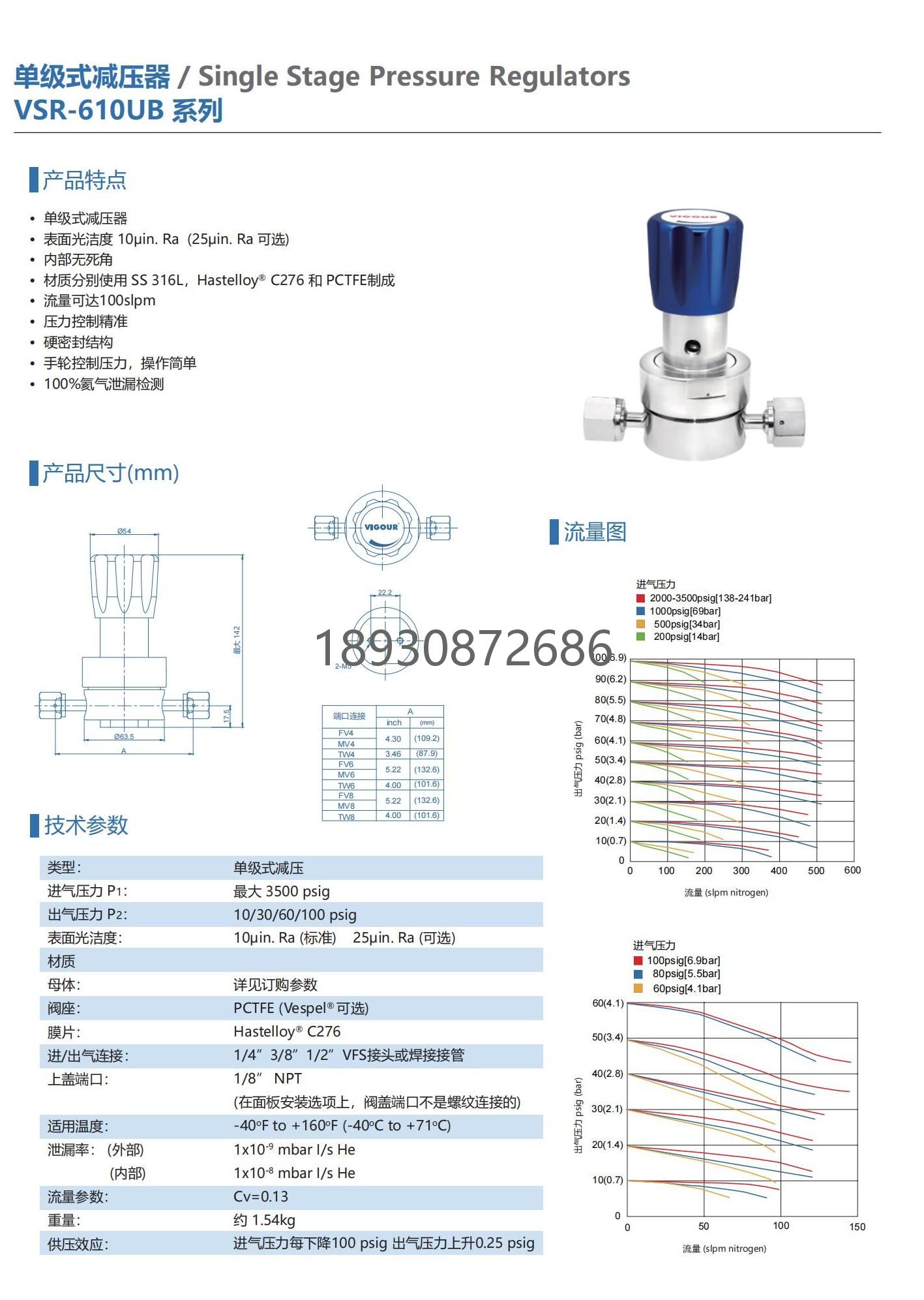 VIGOUREP级1\/4-3\/8-1\/2VCR特气柜减压阀高纯气体调压阀VCR接口