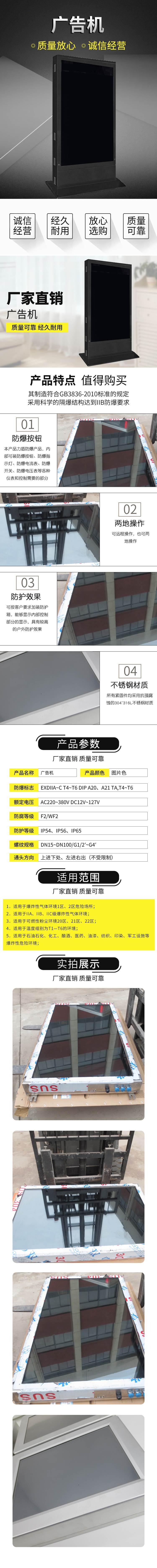 力盾防爆电气有限公司生产的LDSX-B系列防爆广告机,可适用于易燃易爆场所,粉尘类环境、腐蚀和强酸性气体环境,力盾防爆电气有限公司致力于打造同行业优异品牌,在产品的研发和创新方面用心,产品的材质均为级,选用专业防爆材质生产,坚决贯彻使用优质材质,绝不弄虚作假,产品价格为同行业;