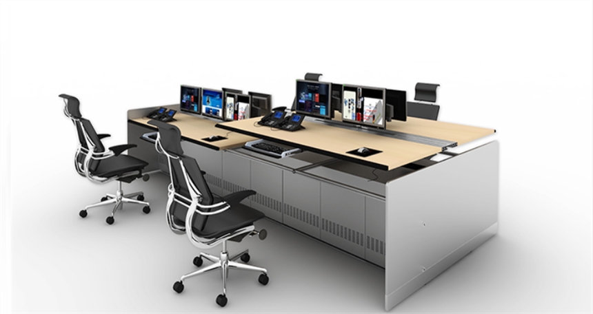 总体设计:控制台可提供多台控制操作台连接的解决方案. 标准规格单联柜,组合式结构,便于运输.上部可安装各种显示器,下部柜体内可安装19"标准控制电脑设备.转角柜有30度或45度可供选择.整体组合后美观漂亮.监控控制台台面板有钢板式或优质实木颗粒板可供选择. 控制台多方位布线功能﹐方便跳线管理及佈线工程。