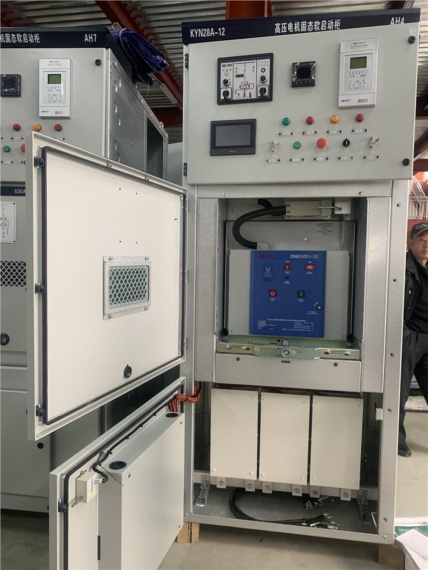 高压固态软启动柜有两种起动方式:一种是软起方式;另一种是直起方式。其中直起方式是备用方式,即在软启动柜出现元件损坏等不能复位的故障,所采用的起动方式。