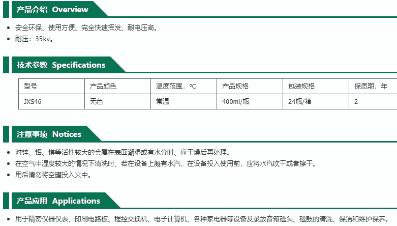 江西欣盛精密仪器清洗剂JXS46 400ml瓶