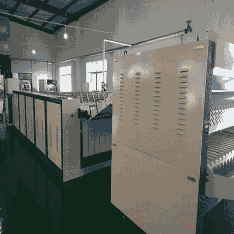 酒店宾馆洗衣房设备价格 100公斤全自动洗衣房设备价格,全自动宾馆用洗衣机的负载特性:机械设备的负载是一个不断变化的负载,布草和洗涤液开始时在滚筒中处于静止状态,洗涤时电机要拖动它在短时间内达到设定的洗涤速度,滚筒内的提升筋将布草提升到洗涤液面的某一高度,当布草的离心力垂直向上的分量小于布草的重力时,布草便跌落到洗涤液中,起到揉搓作用。为了加强揉搓的作用,滚筒总是正转一段时间后,停下来再反转,这样布草的洗净度更高。洗涤完毕后,通过一个比洗涤速度略高的均布动作将布草均匀分布在滚筒中,避免因布草分布不均匀致使布草严重偏心,在高速脱水时引起机器的剧烈振动,损坏宾馆用洗衣机。均布完毕后即进入脱水阶段,为了减小机器的振动,一般都会设置中脱来过渡,使机器稳定一段时间以后再继续加速到高脱频率。对于变频器来说,洗涤和均布过程,都是恒转矩输出的过程,而中脱和高脱过程,则是恒功率输出过程。
