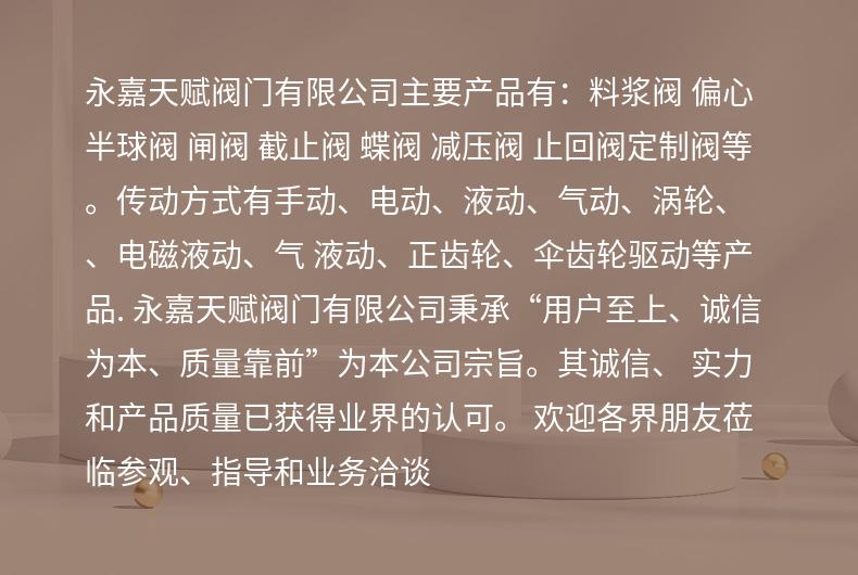 永嘉天赋阀门有限公司 智能客服智能客服在线解答,若涉及资金打款事宜,务必与厂家进行电话确认。