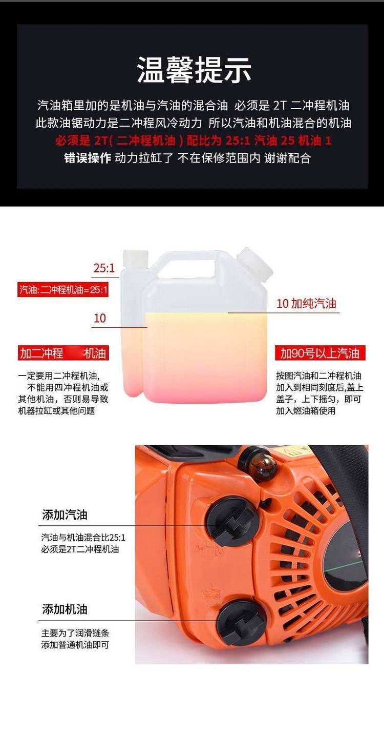 二冲程单缸机动链锯手提式大功率油锯2.5kW怠速:2000rpm-3000rpm