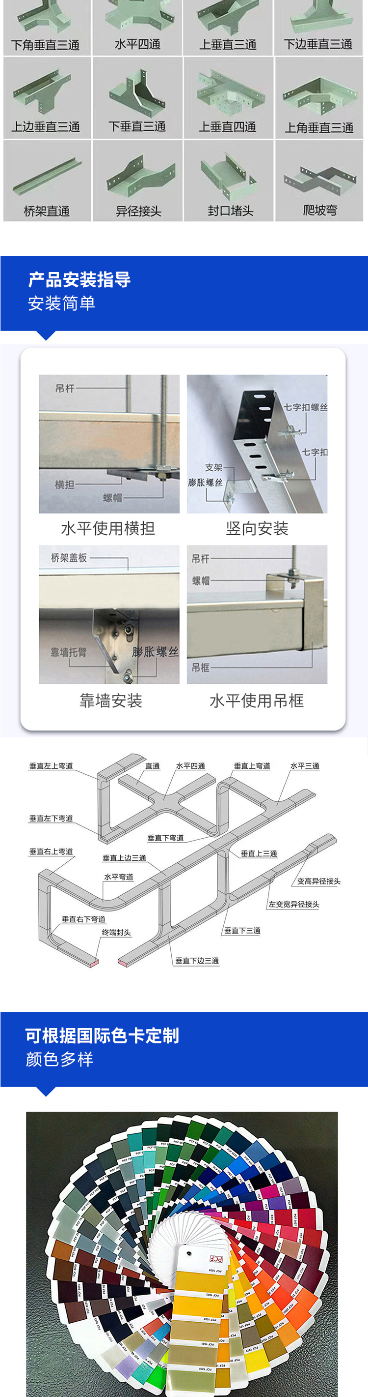 主营产品 | 防火 喷塑 不锈钢 热镀锌 热浸锌 铝合金 网格 高分子 玻璃钢 电缆桥架 | ||