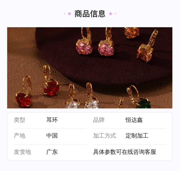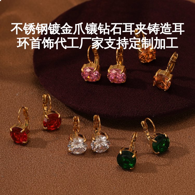 恒达鑫不锈钢镀金爪镶钻耳环生产厂家支持定制加工
