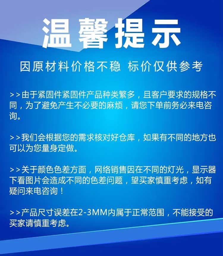 6、组合件和连接副:组合件是指组合供应的一类紧固件[1],如将某种机器螺钉(或螺栓、自供螺钉)与平垫圈(或弹簧垫圈、锁紧垫圈)组合供应;连接副指将某种专用螺栓、螺母和垫圈组合供应的一类紧固件,如钢结构用高强度大六角头螺栓连接副。