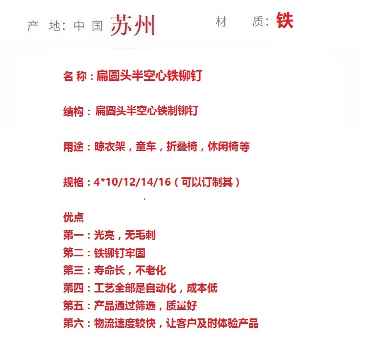 扁圆头半空心铁铆钉制造? 半空心铁铆钉制造? ?扁圆头铁铆钉厂? 铁铆钉订制? 半空心铁铆钉厂 |