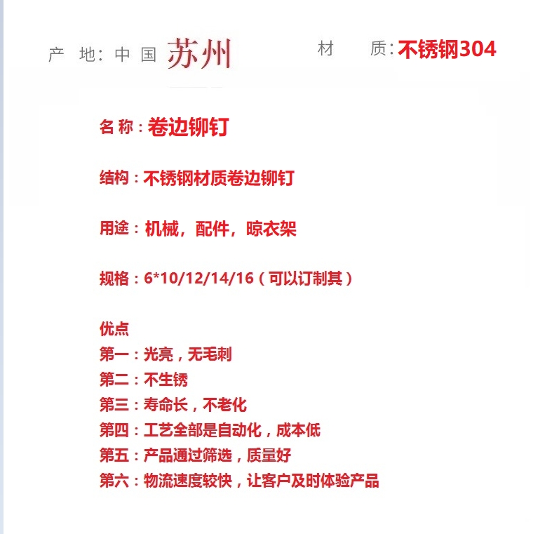 卷边铆钉 翻边柳钉 不锈钢半空心铆钉翻边铆接不开裂