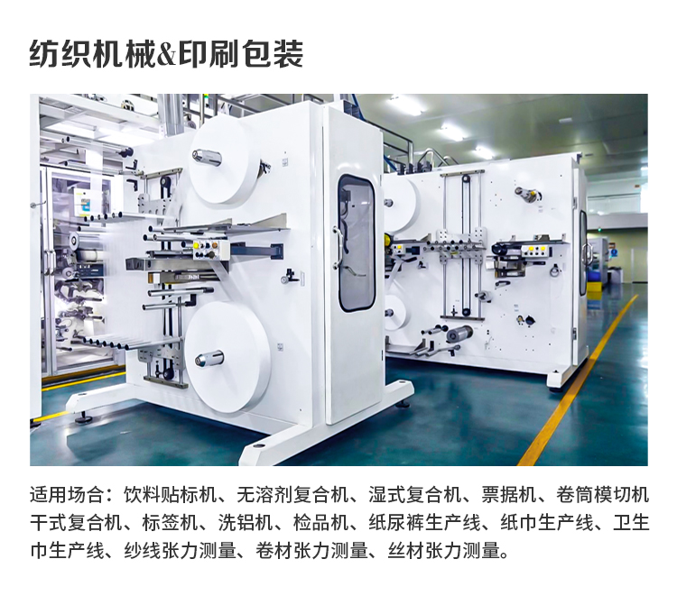应用领域 | 印刷、符合、涂布、剪切、造纸、橡胶、纺织、电线电缆及胶片等卷取控制设备和生产线上。 | ||