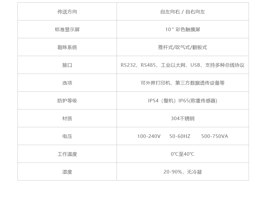 功能 | 净重检测、残损检测、漏装检测、缺件检测 | ||