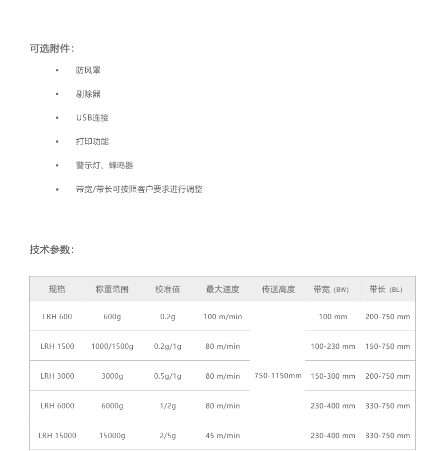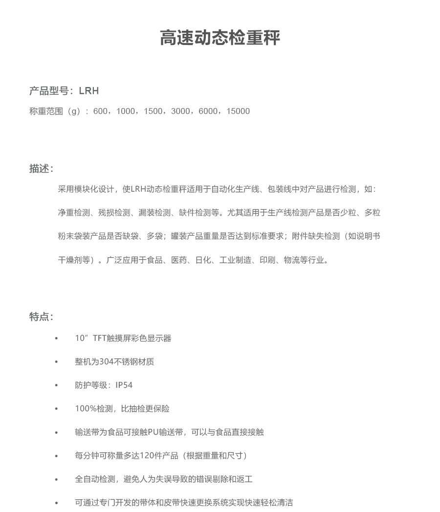 流量 | 每分钟可称量多达120件产品 | ||