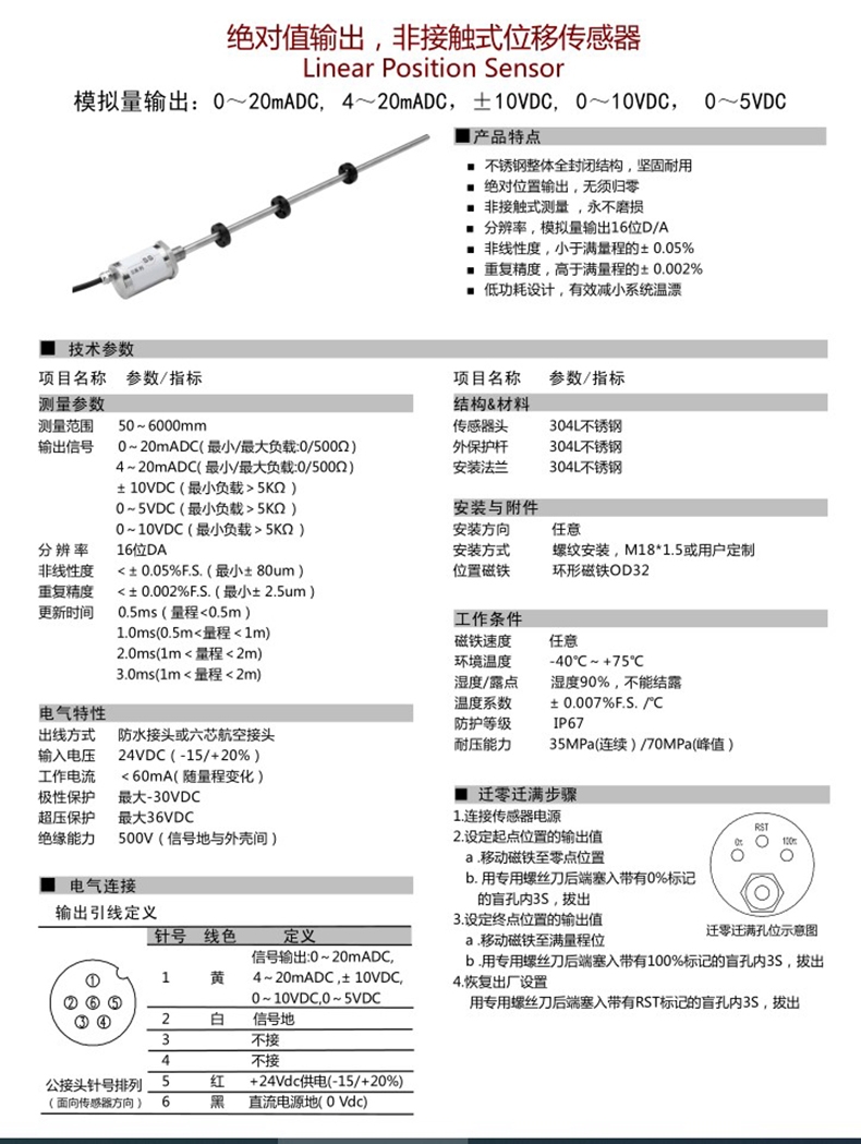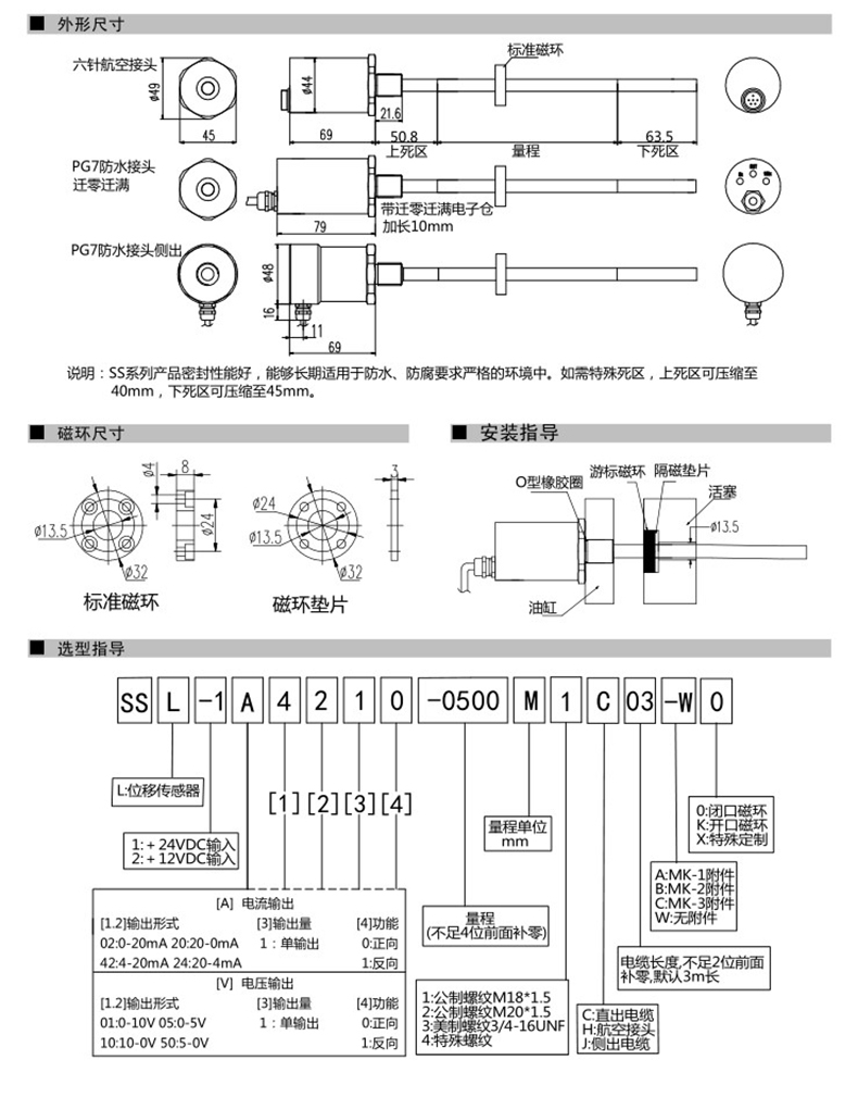 SS位移传感器不绣钢结构绝对位置输出0~20mADC 贺迪OEM厂家