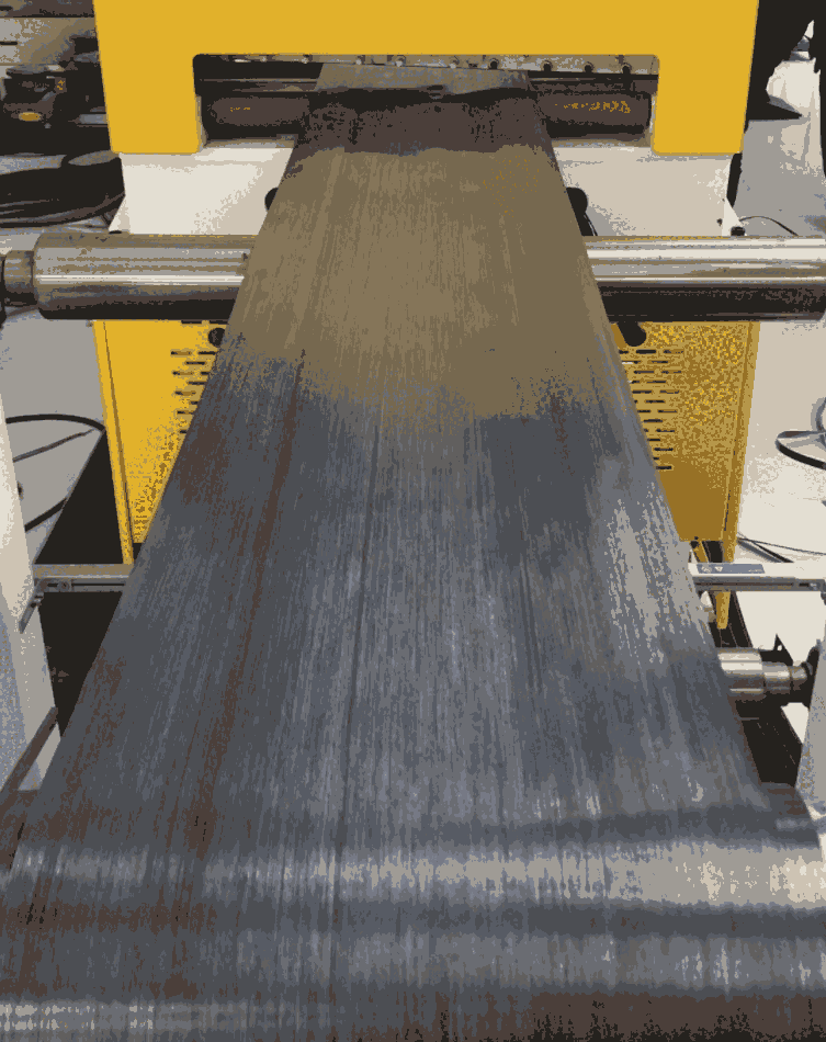 采用热塑挤出熔融浸渍法生产尼龙(PA)+连续碳纤维增强热塑性单向预浸带;