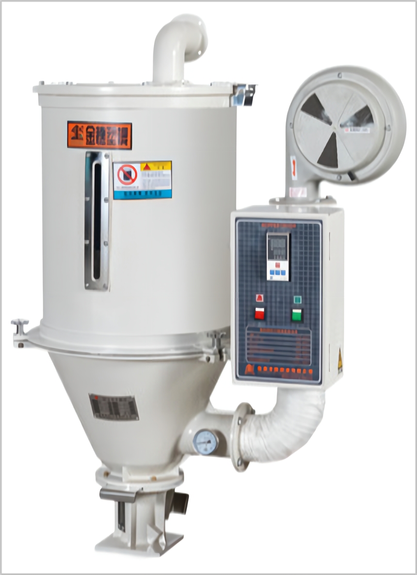 塑料吸料机被广泛地应用在塑胶行业上如:注塑成型,片材押出,电缆挤出,PE吹膜,造粒挤出等塑料生产制造加工行业。吸料机由马达、电气控制、吸料斗、输送管道、过滤器、机身等部件组成,不仅能对多机台,集中原料处理,封闭输送,还可以对成型机台24小时不间断供料,缺料报警,并且配备旋风集尘过滤器和脉冲过滤器,让吸料机长时间处于良好工作状态中,同时也延长了马达使用寿命,干燥料桶隔离安装,更适合原料集中管理。不少的塑料加工生产企业利用塑料吸料机为干燥机输送塑料原料。下图的热风式干燥机