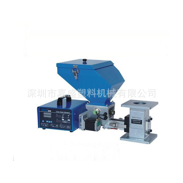 在一般情况下,计量式色母机直接安装于成型机的入料口处,为了防止控制箱随成型机螺杆动作而晃动而产生相关配件的松动,建议将其控制箱固定于某支架上。该产品的马达减速比分为30:1及50:1等,螺杆直径区分为12、16、20、25、30mm五种,可演变出六种机型提供每小时0.1到50公斤的不同输出量供客户选择。另有双色色母机,可依客户需求搭配任意两台色母机合并使用。
