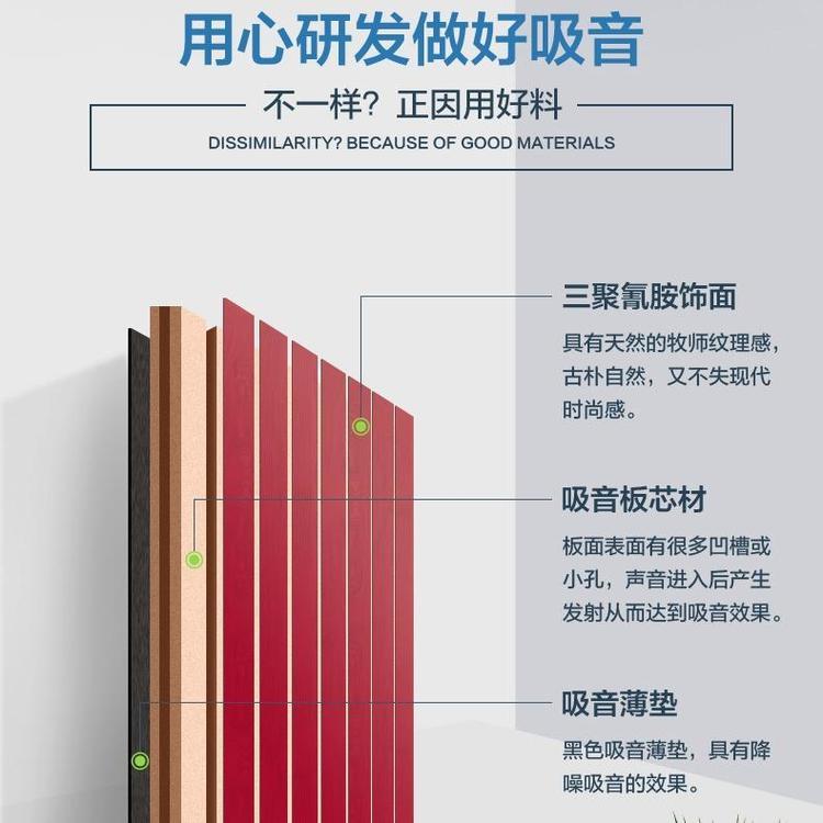 吸音板是指板状的具有吸音减噪作用的材料,木质吸音板是根据声学原理精致加工而成,由饰面、芯材和吸音薄毡组成。
