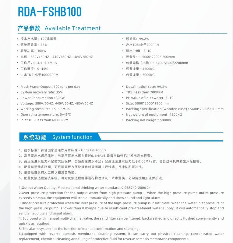 海岛用大型海水淡化设备 RDA-FSHB100