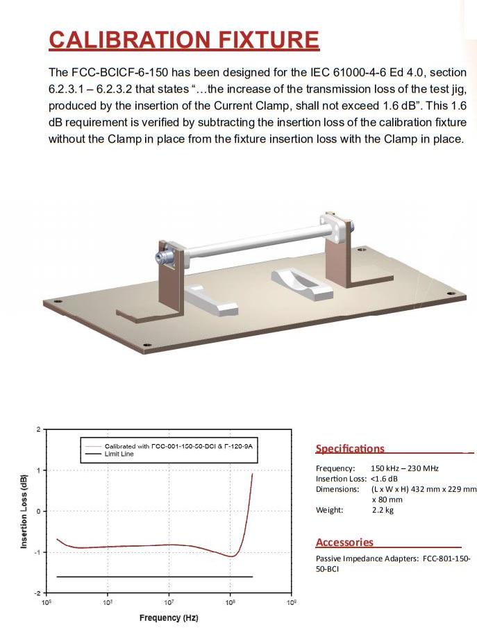 1.由于电缆和电缆绝缘器中存在可变的电路阻抗或谐振,校准夹具用于确定注入探头的正向功率,以在被测系统中产生规定的电流。