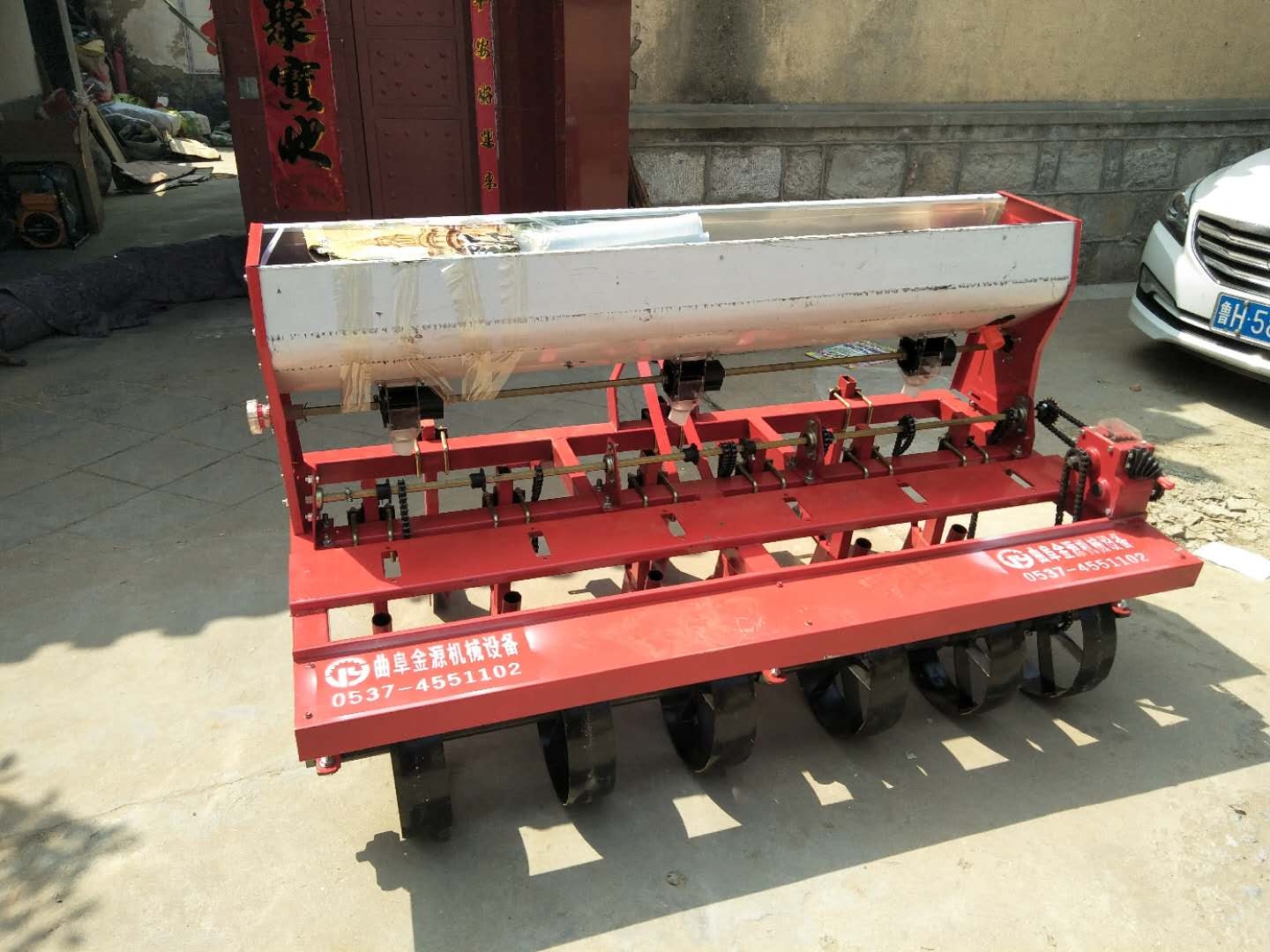 2)自带动力播种机,适合大面积作业,可在垄上播种。
