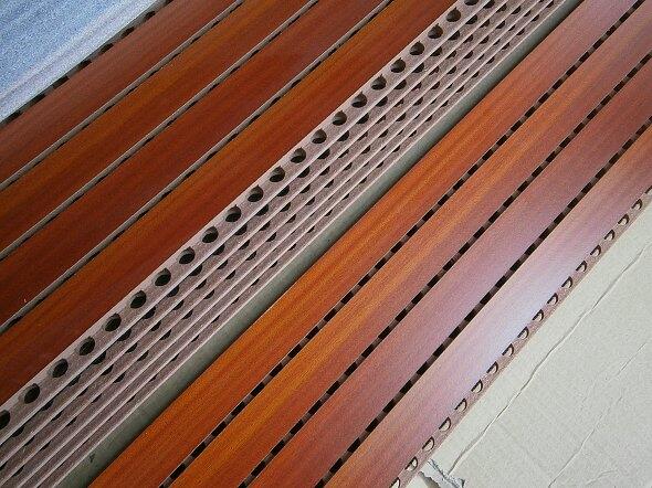 槽木吸音板是一种在密度板的正面开槽、背面穿孔的狭缝共振吸声。常用于墙面或天花装饰