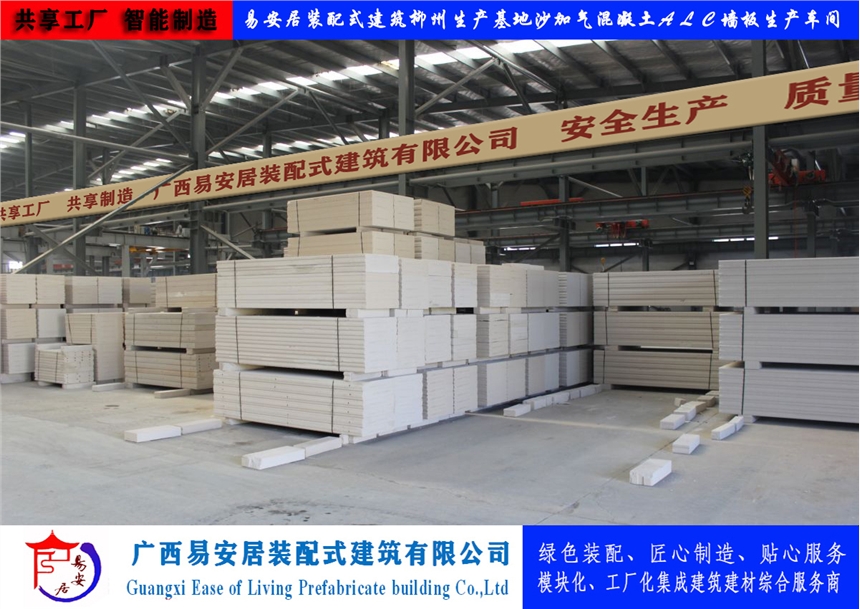 广西易安居装配建筑有限公司生产制造的ALC墙板实现了生产工业化、标准化,安装产业化,具有完善的应用配套体系,配有专用连接件、勾缝剂、修补粉、界面剂等;产品容重轻、强度高、速度快,施工干作,可锯、切、刨、钻。其隔音性、耐火性、抗冻性、抗渗性均有较好的性能效果。其主要参数指标及特点如下:
