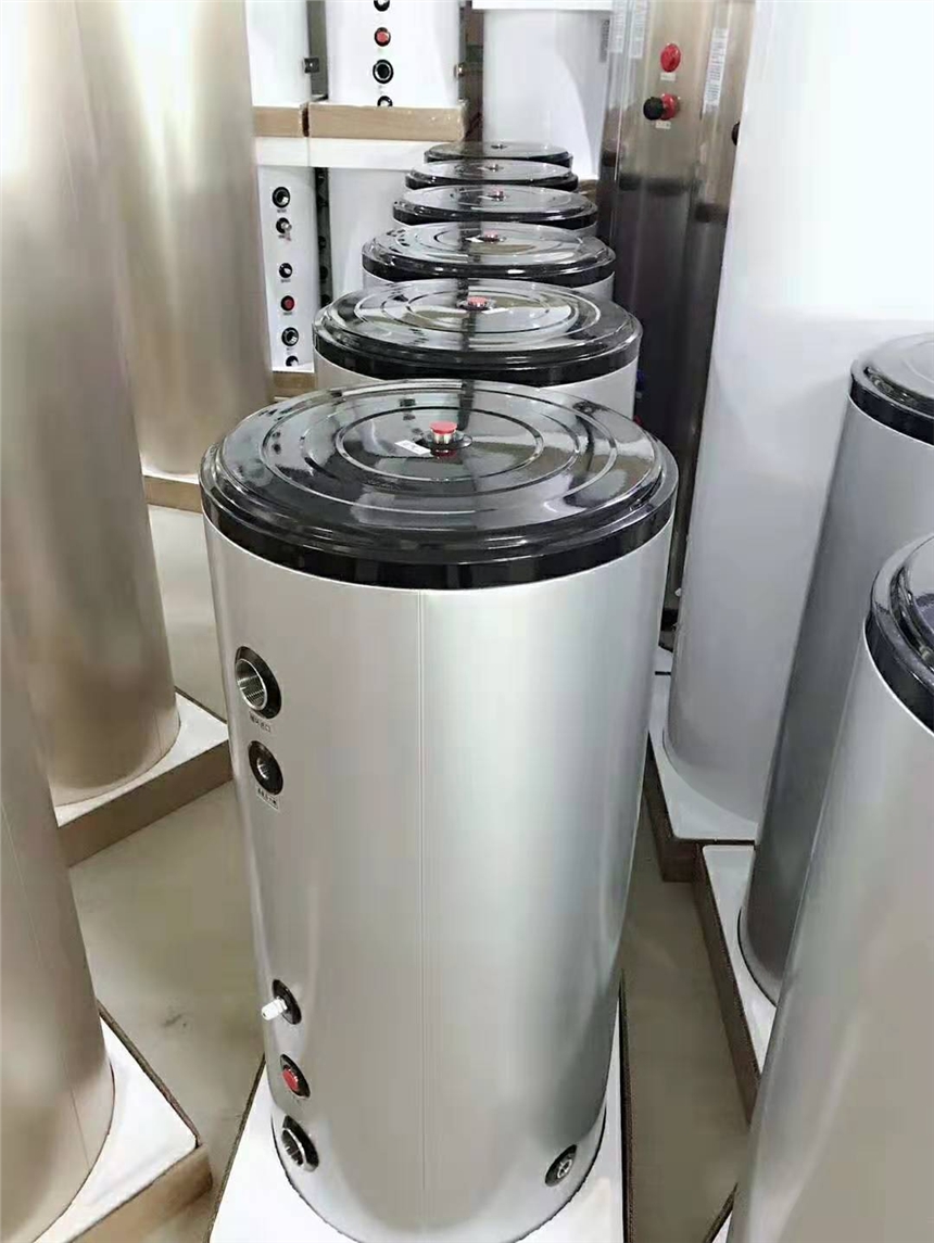 2、条件允许,使用一台锅炉、一块平板太阳能,或者废热能源等对缓冲水箱(带盘管)进行能量补充。