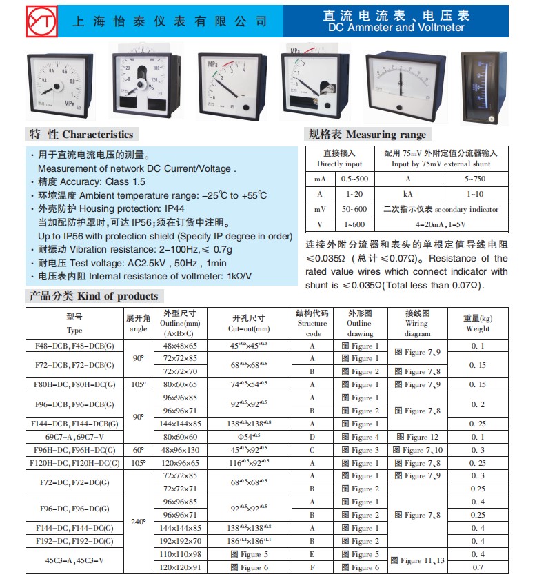 上海怡泰F96-DCB直流压力表(上海怡泰仪表有限公司)