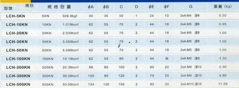 規格容量 | 5KN〜500KN |