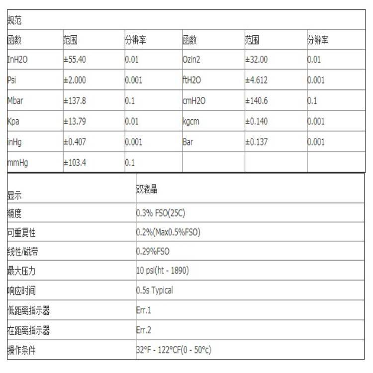 ht - 1890从-55年数字压力计测量计/差压水55 水(2 psi)。它功能11选择的计量单位:in H2O, pis, bar,mbar,Kpa,inHg,mmHg,ozin2,ftH2O,kgcm,额外的功能包括数据保存和自动关机禁用,小心使用这个表将提供多年的可靠的服务