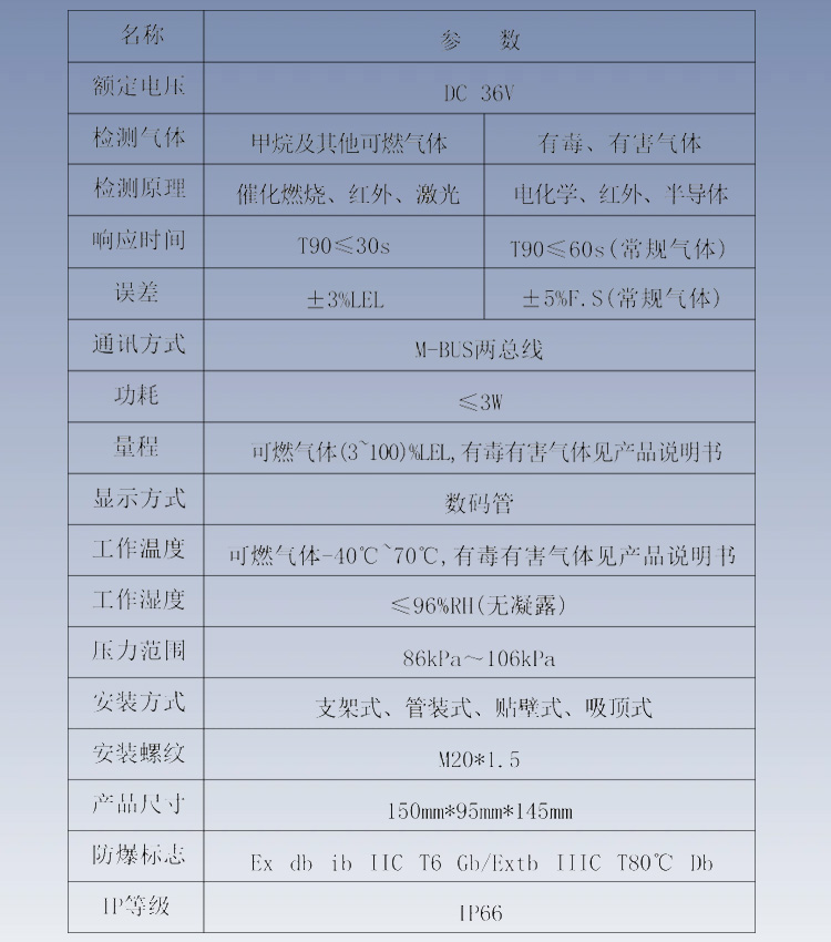 防爆标志 | Ex db ib IIC T6 Gb/Ex tb IIICT80℃ Db | ||