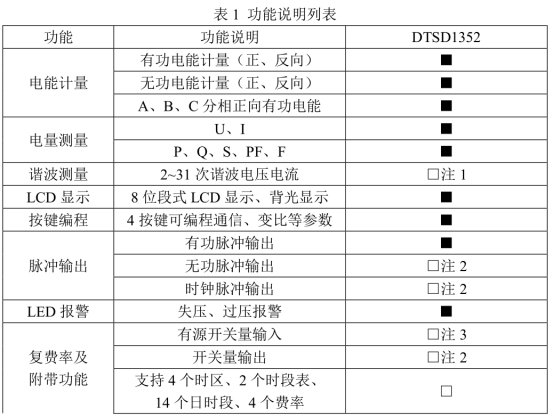 注:1:外置互感器规格时,谐波测量为标配,其余规格均为选配。