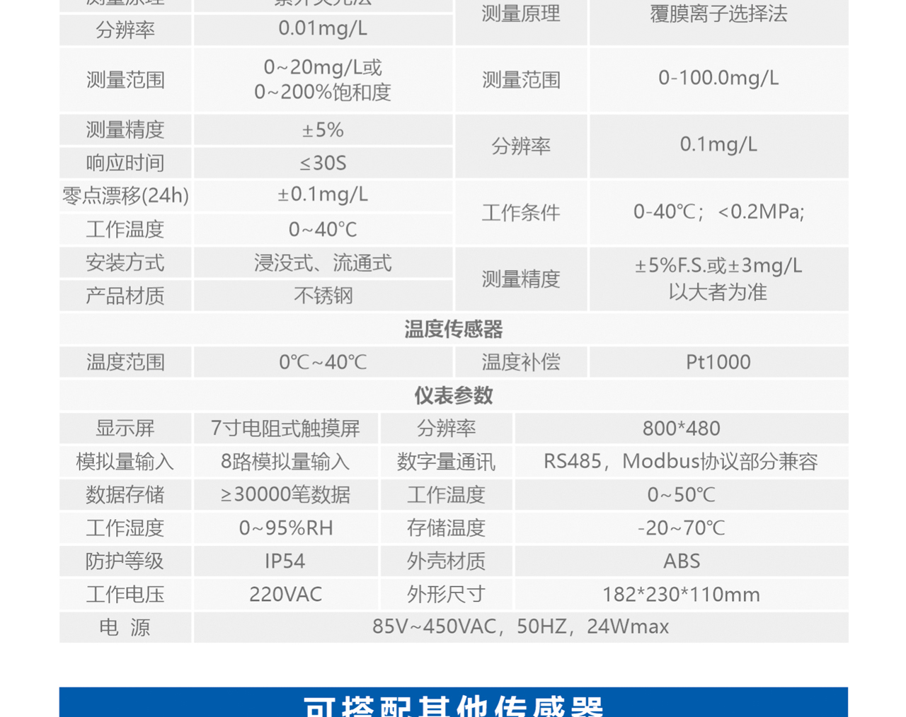 • 规格:水产养殖多参数监测仪