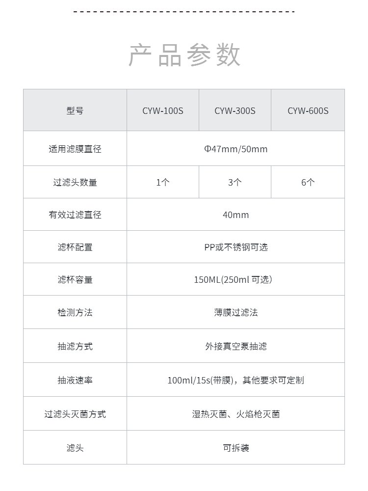 过滤头灭菌方式 | 湿热灭菌、火焰枪灭菌 | ||
